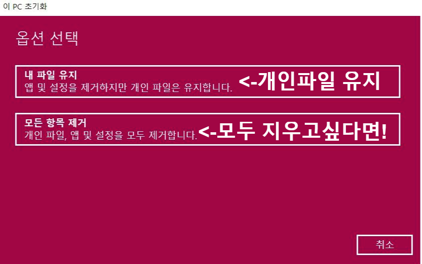 초기화 전 중요자료는 백업해두세요.>>>